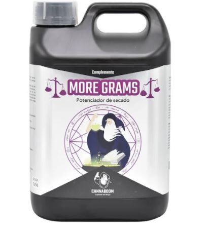 ¿Estás cansado de tener un gran cultivo y, después, en el proceso de secado, llevarte una desilusión cuando ves que la cosecha se te queda en nada y pierdes más de un 80% en peso? Pues MORE GRAMS actúa rellenando el interior del cogollo de fibras vegetales, almidón y proteínas y transformando parte del agua que hay en el interior en masa, además notarás que, conforme van pasando los días, en el proceso de secado los cogollos estarán más llenos y se irán apretando más. Gozarás de los resultados muy rápido ya que acelera el tiempo de maduración manteniendo intacto su aroma y potenciando su sabor. Este producto se puede utilizar en cultivos de tierra, interior, exterior, hidropónicos y coco. Para cultivos en hidroponía diluir muy bien previamente para evitar obstrucciones.
