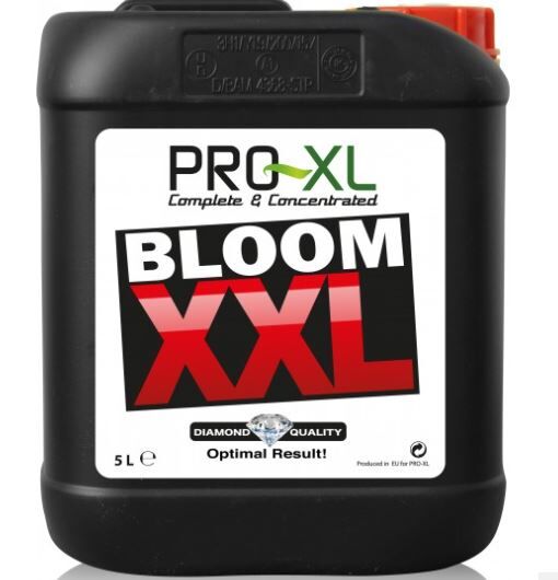 Bloom XXL de Pro XL es uno de los explota cogollos más potentes del mercado Bloom XXL de Pro XL es un poderoso estimulador y potenciador de la floración que produce unas formaciones florales impresionantes. Lo aplicaremos en combinación con el fertilizante básico para mejorar el rendimiento de tu cultivo. Puedes complementarlo con otros aditivos como el Flora Exploder y el Quick Boost de Pro XL. Bloom XXL ayudará a los cultivadores a conseguir más producción, haciendo que las plantas dediquen todas sus fuerzas en producir flores. Hace un efecto similar a cuando podamos las ramas bajas, los nutrientes se transportan rápidamente a las flores que van quedando en las zonas más altas. Propiedades y efectos de utilizar correctamente Bloom XXL de Pro XL Bloom XXL hará que los nutrientes se dirijan hacia donde más lo necesitan en la fase de floración, a las zonas de las puntas de las ramas. En conjunto con los minerales que contiene, tendremos todo lo que necesita para una floración de máximo nivel y sin carencias. Un aporte de PK 15/16 le dará el extra de fósforo y potasio que necesitan nuestras plantas en el engorde, y una fusión de hierro y oligoelementos hará que no tenga carencias de microelementos cuando menos nos conviene, ya que puede estresarse y dejar de producir. Se usa en combinación de los demás abonos de la marca Pro XL, y sirve como complemento de engorde a partir de a 3º semana de floración. Se debe usar hasta el final del cultivo; así nos aseguraremos una buena asimilación de nutrientes hasta que la planta no pueda engordar más. Nuestros cultivos serán más agradecidos y productivos, teniendo plantas saludables hasta el final de la cosecha. Una planta sana hasta el fin de sus días, es mucho más potente y productiva que una que ha sufrido de carencias o excesos de nutrientes. Así que si quieres la máxima calidad y cantidad de flores, ayuda a tus plantas a asimilar nutrientes y dirigirlos donde más los necesita. Paso a paso para el correcto empleo de Bloom XXL de Pro XL: Agitar bien antes de usar. Añadir de 0.75ml por litro a 2ml por litro de agua de riego. Subir progresivamente empezando por la dosis mínima, y llegando a las dosis más altas cuando más lo necesiten en pleno engorde. Uso mínimo 0.75ml por litro. Uso normal en los riegos con abono 1ml por litro. Uso semanal 2ml por litro. Usar en conjunto de la base Bloom A+B de Pro XL y el resto de aditivos que le toquen en ese riego. Utilizar 1-2 veces por semana, intercalando riegos con agua sola en tierra. Si lo usamos en Hidro o Coco usar siempre según EC, no superando los 2.2mS/cm en floración. Regula el pH de 6.5 a 6.8 en floración, así podrá asimilar mejor aún los nutrientes. Dejar de usar 10-15 días antes de la cosecha. Formulación del Bloom-XXL de Pro-XL: NPK 0-15-16 + Fe 15% Fósforo. 16% Potasio. Hierro. Oligoelementos.
