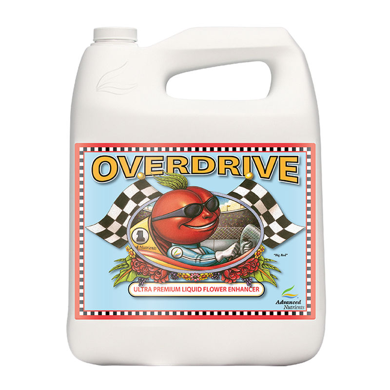 Overdrive de Advanced Nutrients para engordar los cogollos en las semanas finales Overdrive es un fertilizante especial para mejorar la floración; tras su aplicación, engordarán las flores que se han estado formando durante el primer mes de floración. Resultados óptimos garantizados. Se aplica cuando sólo queda finalizar la floración; es decir, cuando los cogollos ya están formados y necesitan un aporte extra de Fósforo y Potasio para crear una explosión de nuevos cálices cubiertos de tricomas. Gran contenido en PK con el Overdrive de Advanced Nutrients. Usando Overdrive verás con tus propios ojos cómo tus flores aumentan de tamaño. Quedarán prietas y llenas de resina como nunca, incrementando hasta en un 10% el peso de tu producción de perfumadas flores resinosas. Un significativo aumento del rendimiento de tus cosechas que se traducirá en una gran sonrisa de felicidad y satisfacción. Puedes añadir Overdrive a la mezcla de riego con cualquier tipo de fertilizante de floración, pero se recomienda utilizar en combinación con las bases de floración de Advanced Nutrients para obtener excelentes resultados. Combínalo con otros productos de la marca que complementarán a Overdrive, manteniéndolas sin estrés y con una salud de hierro, utilizando una sencilla tabla de riego que te proporcionará Advanced Nutrients, con Voodoo Juice, Big Bud y B52 por ejemplo. DOSIS Y MODO DE EMPLEO: Añade 2ml por litro de agua de riego. Aplicar durante las dos últimas semanas de la fase de floración, previas al pertinente lavado de raíces. COMPOSICIÓN Y FORMULACIÓN: Nitrógeno 1% Fósforo 5% Potasio 4% Magnesio 1%
