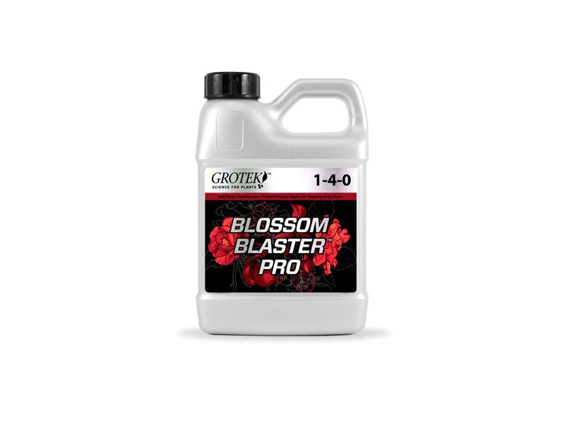 Blossom Blaster Pro de Grotek es un potente estimulador para la primera etapa de floración de las plantas de marihuana. Aporta una dosis exacta de Hierro, fosforo, nitrógeno, etc que harán que la planta desarrolle y aumente el número de brotes florales, aumentando así posteriormente la producción. Además mejora la resistencia al estrés producido por etapas de sequía o faltas de riego y acorta el tiempo desde que cambia a floración hasta que empieza la producción de las pre flores. Más cogollos en las plantas con Grotek Blossom Blaster Pro. Con Blossom Blaster conseguiremos que la planta no crezca tanto verticalmente y se centre en acortar la distancia entre nudos haciendo que la floración sea más abundante, las plantas quedan algo más bajas, compactas y productivas, incitando a que la planta entre más rápido en floración. También ayuda al desarrollo de las raíces en esta etapa y al transporte de nutrientes a través de toda la planta gracias al aporte de fósforo que contiene. Se puede utilizar tanto en suelo, sustrato, coco, riego por goteo e hidroponía gracias a su rápida disolución en el agua. Apta tanto para cultivos de interior y exterior. Floración más rápida y más productiva. Para conseguir el máximo rendimiento de tu cultivo, combina Blossom Blaster Pro con Solo Tek Bloom y Monster Bloom, obtendrás producciones espectaculares. Una cosecha de revista. Modo de empleo de Grotek Blossom Blaster. Aplicación en riego: Mezclar 1ml por cada 1 litro de agua de riego una vez por semana. Desde la semana 1ª de floración hasta la semana 3ª de floración. Aplicación pulverizada: 0.5ml por cada litro de agua en un pulverizador. Rociar las hojas una o dos veces por semana desde la 1ª de floración hasta la 3ª. En cultivo de auto florecientes se empieza a aplicar a los 20 dias desde el germinado, justo antes de ver las primeras pre flores. Composición de Blossom Blaster liquido. Nitrogeno total (N)………………..1% Fosfato disponible (P2O2)………4% Boro (B)………………………………..0.02% Hierro (Fe)…………………………….0.1% Molibdeno (Mo)………………………0.01% Zinc (Zn)………………………………..0.2%