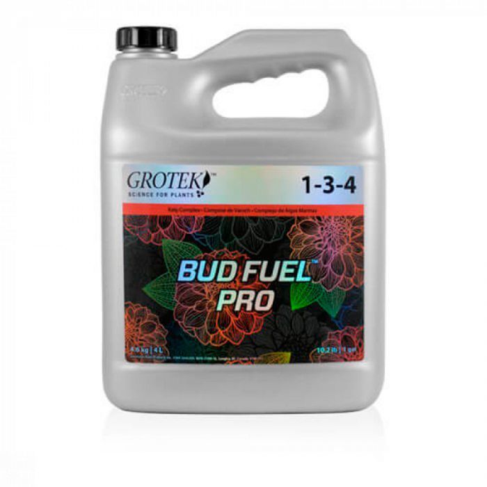 Bud Fuel Pro de Grotek acelera los procesos para iniciar la floración cuanto antes Bud Fuel Pro de Grotek es un potente estimulador de la floración que añadimos al final de la fase de crecimiento para que tus flores aparezcan antes. Se aplica desde la primera semana de prefloración, hasta la 4ª semana de floración real. Puedes utilizar este producto en sistemas de riego automático sin miedo a que ocasione obstrucciones en las tuberías. Con ingredientes 100% solubles en agua y asimilables por las plantas. Puede aplicarse en cultivos con cualquier tipo de sustrato, ya sea en Hydro, Aero, NFT, Coco o Tierra. ¿Cómo utilizar el Bud Fuel Pro de Grotek en nuestros cultivos de marihuana? Budfuel Pro se añade al agua de riego en combinación con fertilizantes básicos que aportarán la comida principal para tus plantas. Puedes combinarlo con Solo·Tek Grow y Vegetative Growth Booster para conseguir plantas enormes desde el inicio. Consulta el detallado programa de cultivo de Grotek para darles una alimentación profesional a tus cultivos. Tus plantas se prepararán para formar muchas flores y más grandes gracias a los componentes de Bud Fuel Pro de Grotek. Los sistemas internos de la planta se verán acelerados permitiendo que sus raíces absorban grandes cantidades de nutrientes. Dosis y modo de empleo de Bud Fuel Pro: Añade 2,5ml por litro a tu solución de nutrientes junto al resto de fertilizantes que le toque esa semana. Empezaremos a aplicarlo en la primera semana de prefloración. Composición de Bud Fuel Pro de Grotek: NPK 1-3-4 Nitrógeno: 1% Fósforo: 3% Potasio: 4% ¡ATENCIÓN! Grotek ha renovado su linea de nutrientes de manera drástica, ya que también ha formulado nuevas composiciones para toda la gama de productos, cambiando en algunos de ellos también el nombre. BLOOM FUEL (0-0-2 NPK) pasará a llamarse BUD FUEL PRO (1-3-4 NPK).
