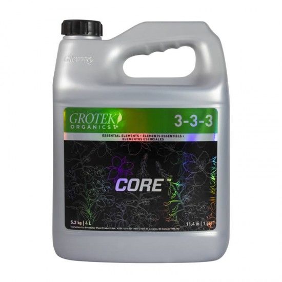 Core de Grotek Organics es una mezcla de nutrientes esenciales que proporciona los elementos primarios y secundarios de fuentes de origen vegetal. Como base de composición contiene una línea equilibrada de NPK, los elementos esenciales para que tu planta de marihuana crezca fuerte y de calidad. Grotek Organics nos garantiza una composición totalmente natural y libre de compuestos químicos, incluye minerales esenciales para un correcto desarrollo de nuestro cultivo, además de humatos y otros metabolitos orgánicos, óptimos para el cultivo de plantas. Es capaz de mejorar la calidad y biología del suelo, formando un sustrato más óptimo para el desarrollo de nuestras cepas. Core de Grotek Organics ha sido desarrollado para poder mejorar la capacidad de absorción de agua si es combinado con otros fertilizantes de su línea. Se aplica por riego desde la siembra hasta la fase de floración. Dosificación y modo de empleo de Core 500ml de Grotek Organics: – Se recomienda agitar bien el producto antes de usarlo. – Evite el contacto con los ojos, la piel y la ropa. Lávese las manos después de utilizarlo. – El producto se aplica de la mejor manera como raíz de riego. – Mezclar muy bien 4-5ml de fertilizante por litro de agua. Utilizar semanalmente en macetas o bolsas. O 3-4 veces durante una temporada para exteriores. Composición de Core de Grotek Organics: – Nitrogeno (3%) – Fosforo (3%) – Potasio (3%)