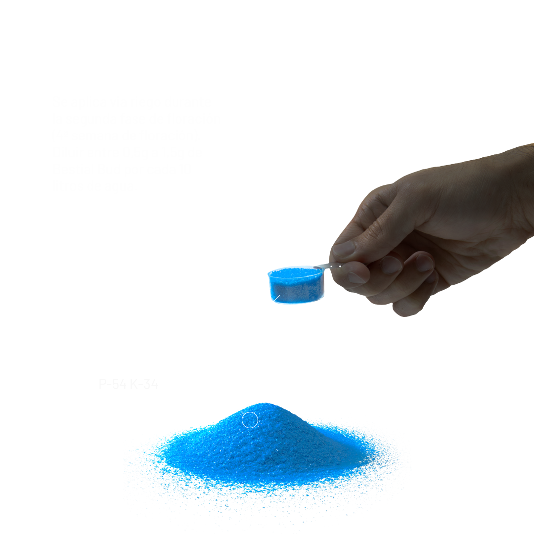 Se aplicará vía radicular durante la segunda fase de floración (4ª semana de floración), a las dosis de 0.5 a 1.5 gr para 10 litros de agua.