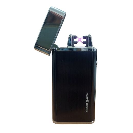 Sin llama, sin gas ni líquido, SilverMatch reinventa el encendedor gracias a las nuevas tecnologías. Características: Encendedor eléctrico antiviento, antilluvia, tormenta. Ideal para actividades al aire libre, multiusos, es adecuado para cigarrillos, velas, gas, camping, etc. Sistema de encendido eléctrico totalmente innovador. Encendido mediante botón, se mantiene durante 10 segundos. Encendedor recargable mediante un puerto USB con cualquier soporte (enchufe de pared, ordenador, batería externa). Se carga totalmente en solo 1,30 horas para un uso económico y óptimo El sistema de encendido eléctrico cumple con todas las normas de seguridad europeas. Batería volumen: 220 mA Cargador USB incluido.