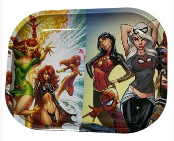 BANDEJA PEQUEÑA HEROINAS MARVEL 18X14CM Descripción: • Bandeja de metal perfecta para liar cigarrillos de manera práctica y limpia • Fácil de limpiar • Metálica y resistente • Medidas: 18X14cm