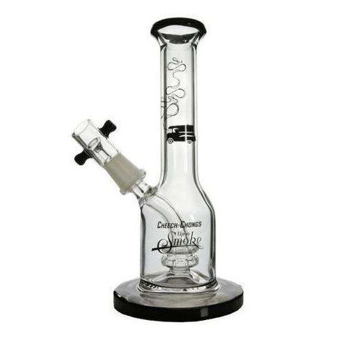 Jade East presenta un brazalete de cuarzo hembra de 14,5 mm que encaja en la junta de conexión macho de 14,5 mm. Tiene una altura de 18cm, lo que lo convierte en el tamaño perfecto para un equipo. Jade East viene equipado con un vástago inferior fijo que termina con un percolador de cabezal de ducha doble. Esto ayuda a disolver el humo y hace que su calada sea súper suave. Esta pieza está adornada con adornos de colores. detalles en la boquilla y una base gruesa que combina con las imágenes de Up in Smoke en el lateral.