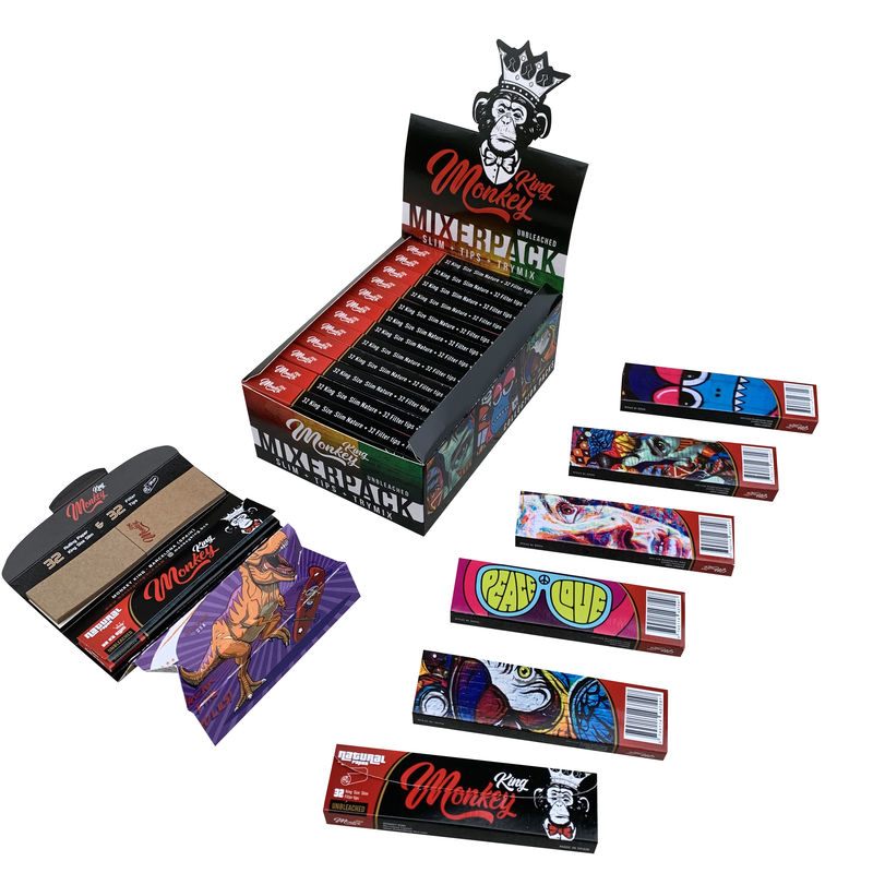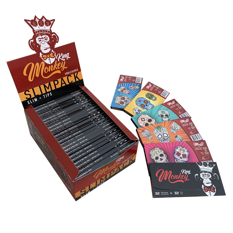 KING MONKEY SMELLPACK POP CORN PAPEL KING SIZE SLIM +TIPS (24 PACK/32LIBRILLOS PAPEL KS+FILTER TIPS)