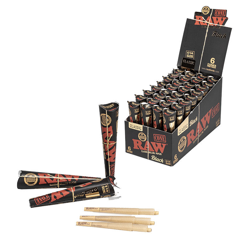 DISPLAY RAW BLACK CONOS 1 1/4 (6PK/32UNIDADES)